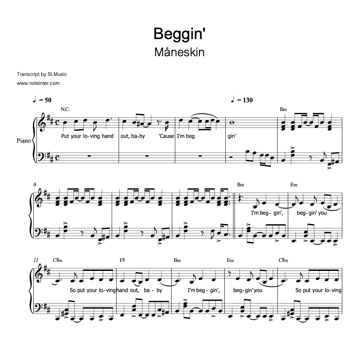 / Beggin’ (Måneskin) โน้ตเปียโน