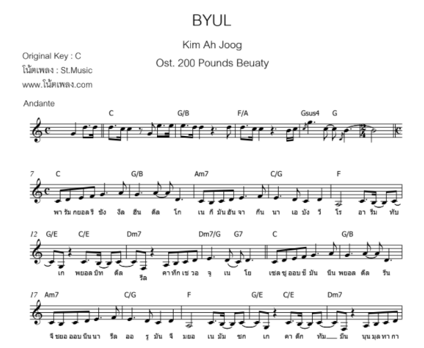 / BYUL-Kim Ah Joog Ost 200 Pounds Beuaty (โน้ตคอร์ด)