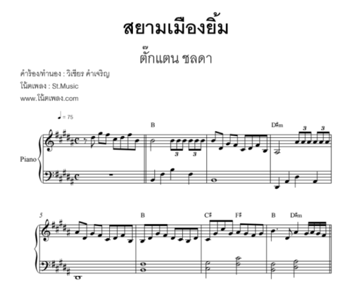 / สยามเมืองยิ้ม (ตั๊กแตน ชลดา) โน้ตเปียโน