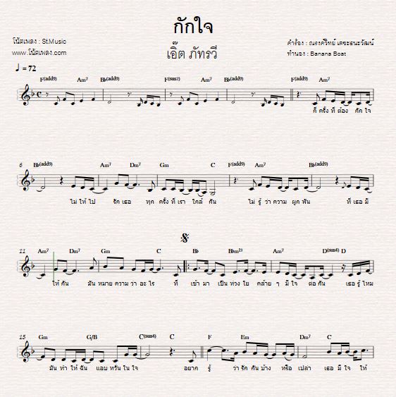 รีวิวเพลงกักใจ เอิ๊ต ภัทรวี เพลงประกอบละครสองเสน่หา คีย์ F จังหวะค่อนข้างช้า เร้นท์เสียงร้องอยู่ระหว่าง G3 – C5 (คู่ 11)