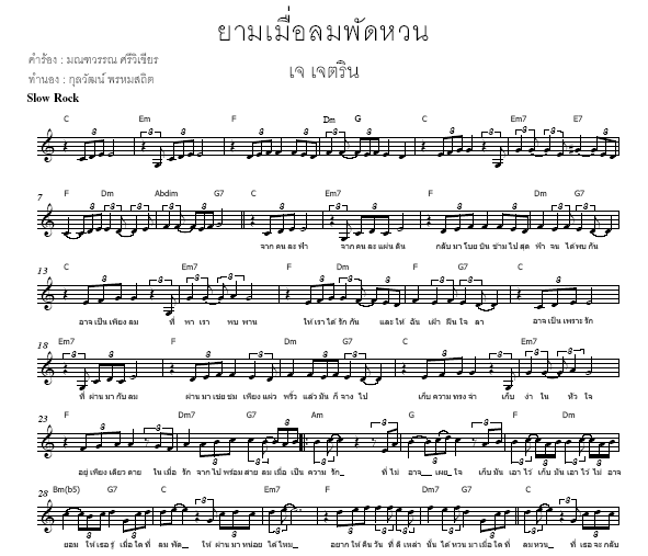 / ยามเมื่อลมพัดหวน (เจ เจตริน) โน้ตคอร์ด