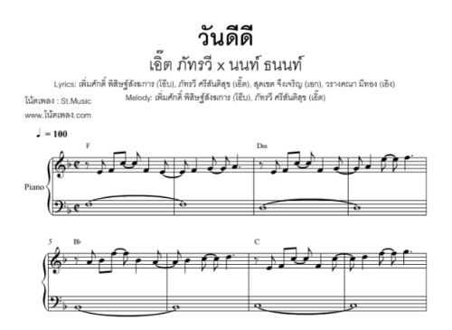/ วันดีดี (เอิ๊ต x นนท์) โน้ตเปียโน