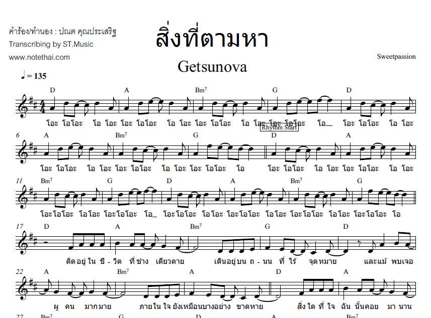 สิ่งที่ตามหา (getsunova) โน้ตคอร์ด