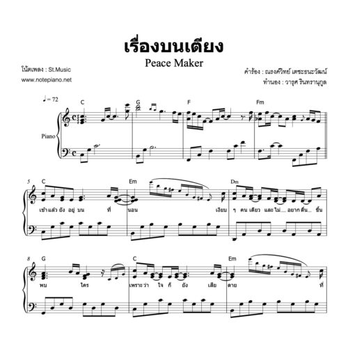 เรื่องบนเตียง (บอย Peachmaker) โน้ตเปียโน