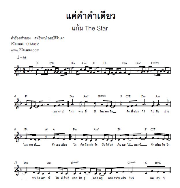 / แค่คำคำเดียว ( แก้ม The Star) โน้ตคอร์ด