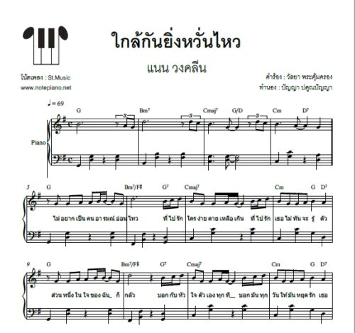 ใกล้กันยิ่งหวั่นไหว (แนน วงคลีน) โน้ตเปียโนง่าย