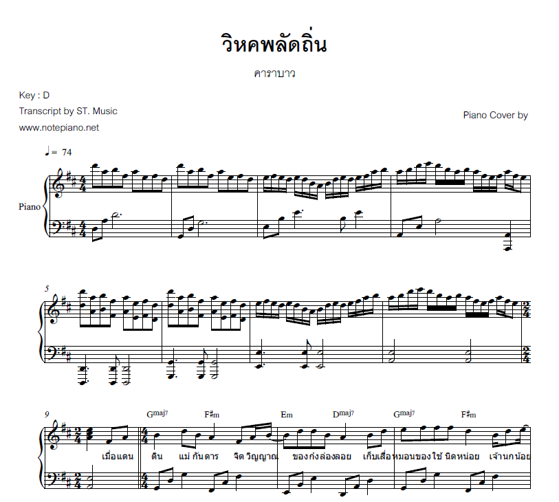 / วิหคพลัดถิ่น (คาราบาว) โน้ตเปียโน