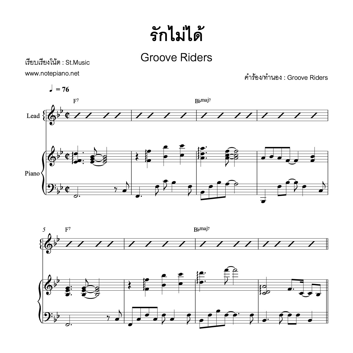 / รักไม่ได้ (Groove Riders) โน้ตเปียโน Accom in Bb