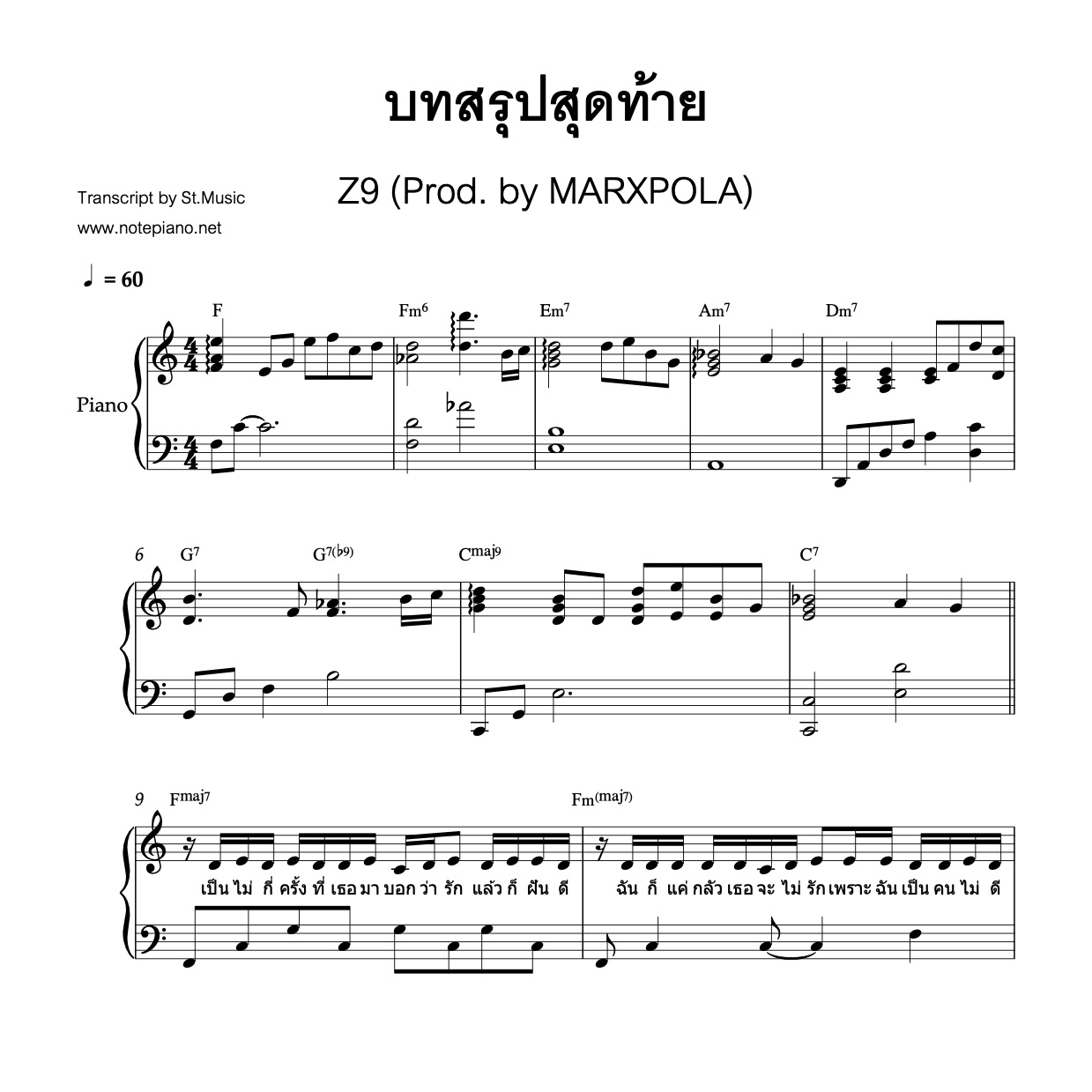 / Z9 – บทสรุปสุดท้าย (Prod. by MARXPOLA) โน้ตเปียโน