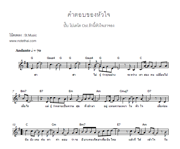 / คำตอบของหัวใจ ปั๊บ โปเตโต Ost.รักนี้หัวใจเราจอง โน้ตคอร์ด