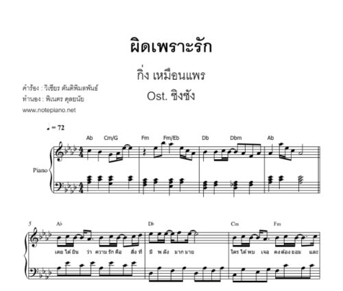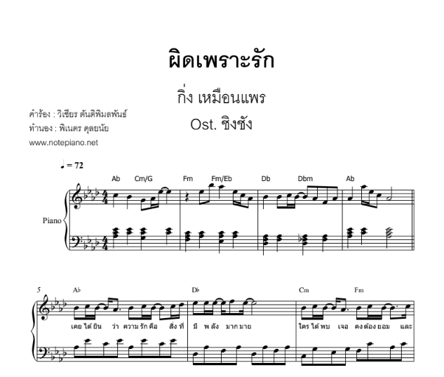 ผิดเพราะรัก - กิ่ง เหมือนแพร ost.ชิงชัง โน้ตเปียโน quantity