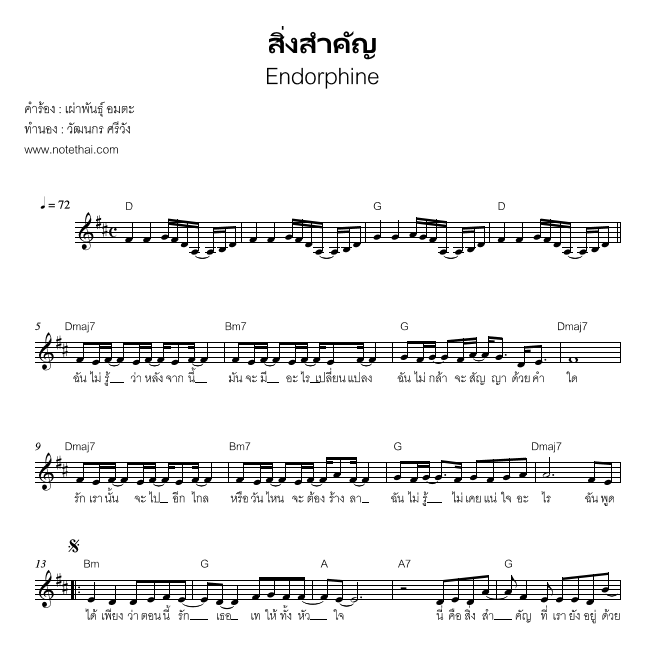 สิ่งสำคัญ (ดา Endorphin) โน้ต&คอร์ด