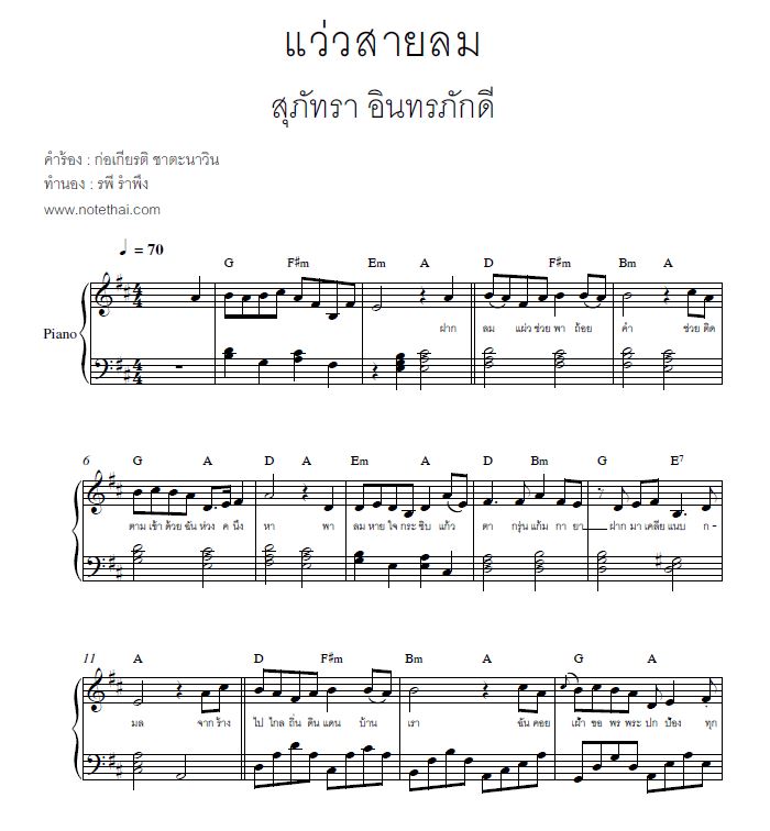 แว่วสายลม (สุภัทรา อินทรภักดี) เปียโน