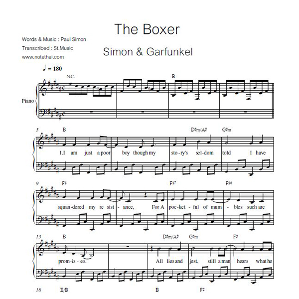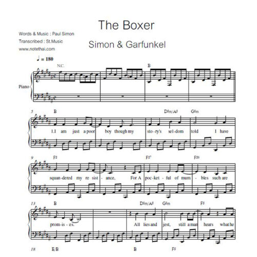The Boxer (Simon & Garfunkel) piano in B quantity