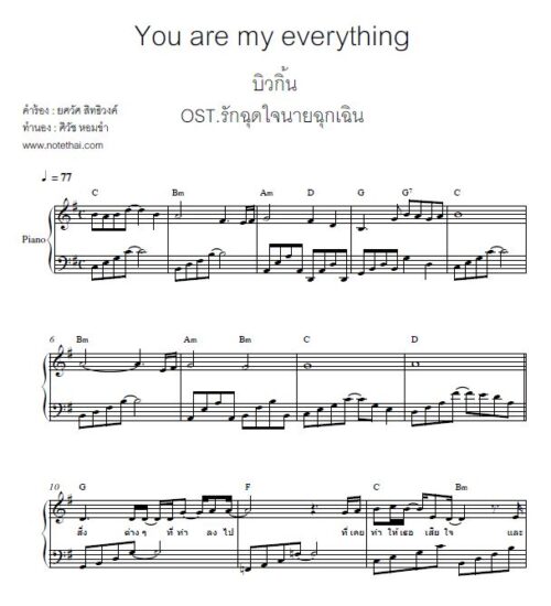 You Are My Everything (บิวกิ้น) เปียโน in G quantity